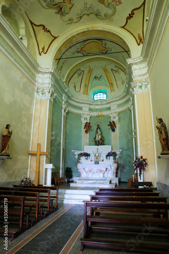 © PaoloGiovanni, Fototapeta premium Crosa (SV), Italy - December 30, 2017: The church inside in Crosa village, Savona, Liguria, Italy