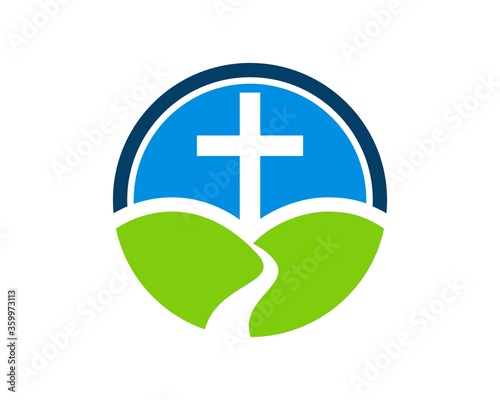 Fototapeta premium Cross and road in the circle