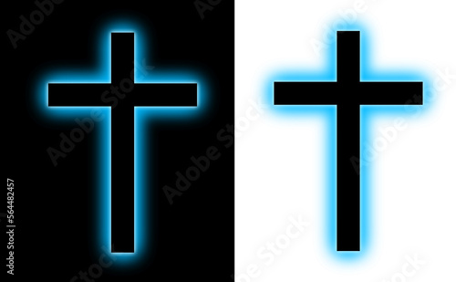© Kal El BSF, Obraz premium cross blue light neon transparent background
