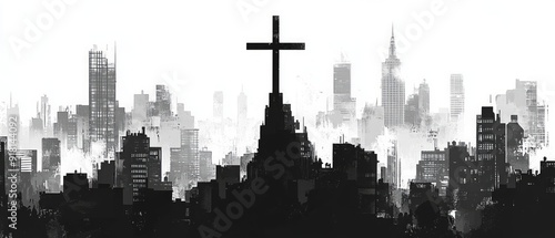 Obraz premium Cross City Crossroads Christianity Religion Spiritual Symbol - Generative AI