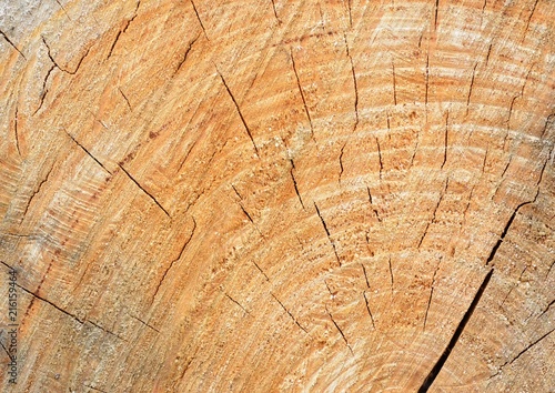 © Олена Белеванцева, Naklejka premium Cross-cut logs, wood texture, life rings, background for presentations, wallpaper