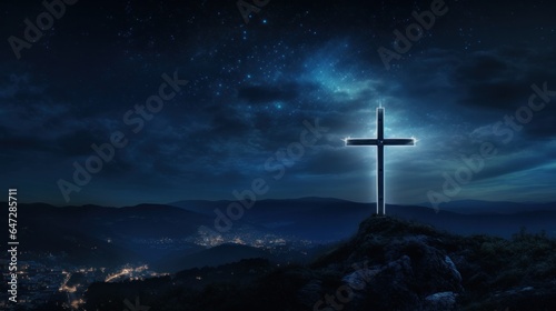 Naklejka premium Cross illuminated in the night
