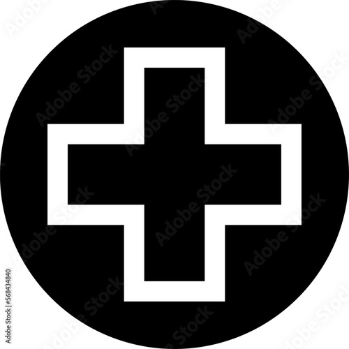 © Kagan Kaya, Fototapeta premium Cross in Circle Symbol First Aid Healthcare Black Sign Icon. Vector Image.