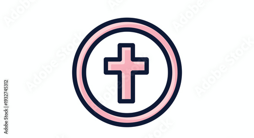 © Asia, Obraz premium Cross Inside Badge Circle Flat Vector Illustration Design