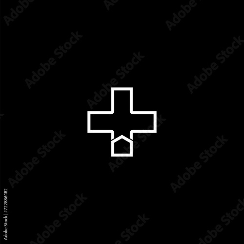 Obraz premium Cross logo for healthy care icon isolated on dark background