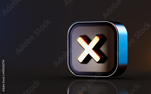 Fototapeta premium cross mark badge icon on dark background 3d render concept for wrong false incorrect disable