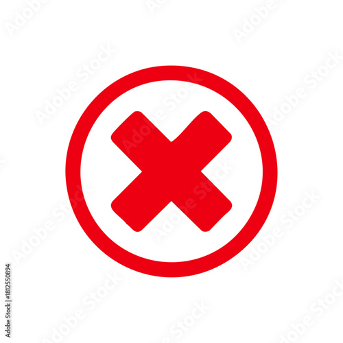 © MdNasir, Fototapeta premium Cross Mark Icon – Red X Symbol Inside Circle for Error, Wrong Selection, Cancel, Rejected Action and Minimal Modern UI Alert Design