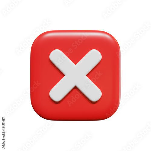 © tuiafalken, Obraz premium Cross mark symbol icon isolated white background, checkmark button and mobile app icon, 3D rendering.