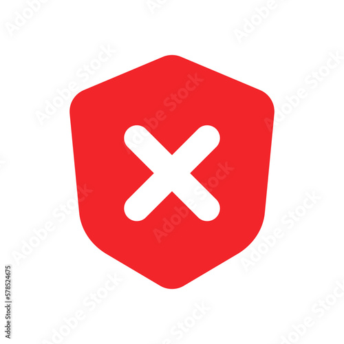 Obraz premium Cross-marked shield icon. Vulnerable security. Vector.