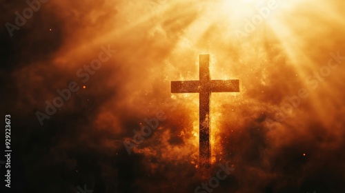 © MUdaylah, Fototapeta premium cross of jesus christ on sorrow darkness and bright light and rays background with generative ai
