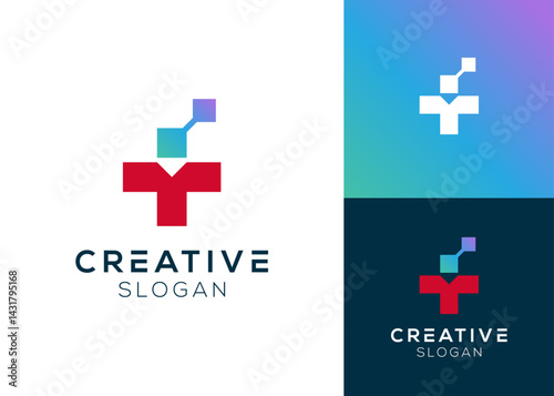 Fototapeta premium Cross or swiss with technology elements logo design