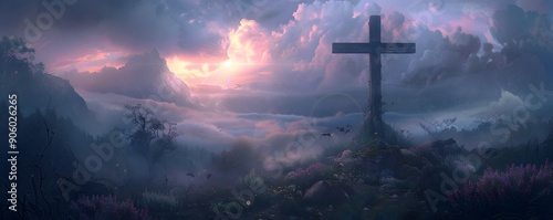 Obraz premium cross, religion, sky, god, christ, church, faith, clouds, crucifix, symbol,...