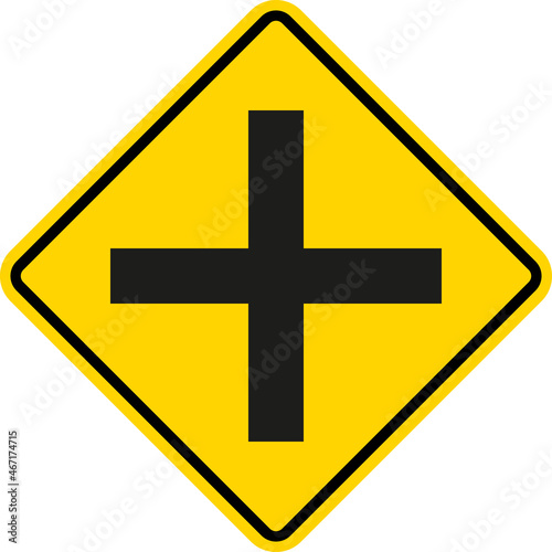 © infinetsoft, Fototapeta premium Cross road intersection sign. Yellow diamond background. Traffic signs and symbols.