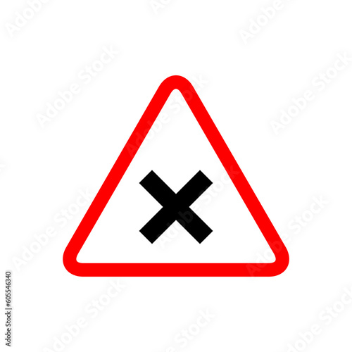 © Sejal, Fototapeta premium Cross road traffic warning sign symbol Red triangle background..eps