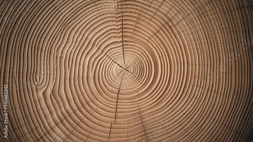 Naklejka premium Cross-section of a tree showing the surface texture of internal annual rings over time.