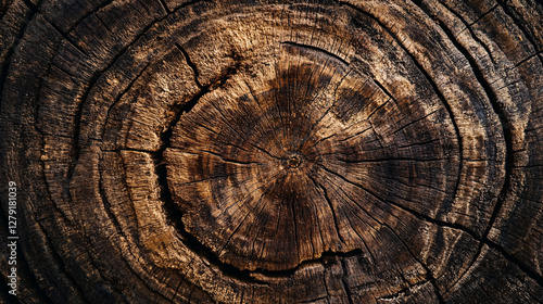 Fototapeta premium Cross section of an old tree trunk with detailed rings