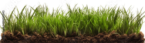 Fototapeta premium Cross Section Row of Fresh Grass on a White Background - Generative AI.