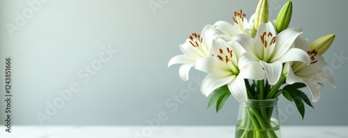 Fototapeta premium Cross-shaped arrangement of white lilies in a vase, white lily, cross lilies