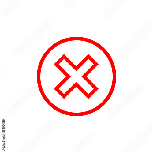 Obraz premium Cross sign element. Red X icon isolated on white background. Simple mark graphic design. Round button for vote, decision, web. Symbol of error, check, wrong or stop, failed. Vector illustration
