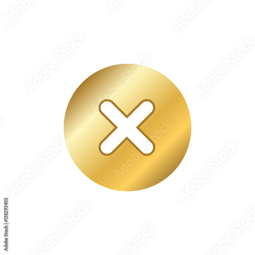 © alona_s, Fototapeta premium Cross sign gold element. Golden metal X icon isolated on white background. Mark graphic design. Volume button for vote, decision, web. Symbol error, check, wrong stop, failed. Vector illustration