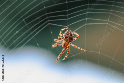 © Spaeth_Pictures, Obraz premium Cross spider is weaving its web