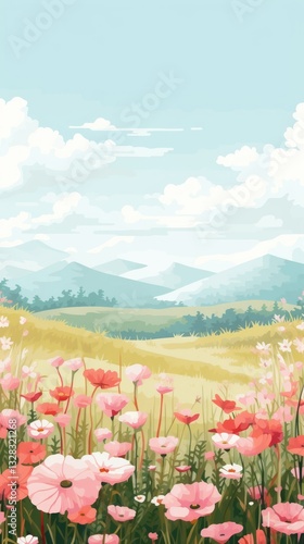 Fototapeta premium Cross stitch flower field wallpaper landscape outdoors nature.