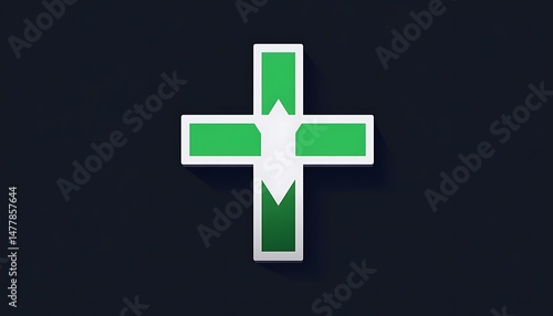 © Jacob Lund, Obraz premium Cross vector icon in green and white for healthcare on a simple solid dark background