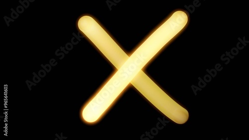 © Сергій Заварикін, Obraz premium Cross Warm yellow light painting element glowing vividly against a black background.