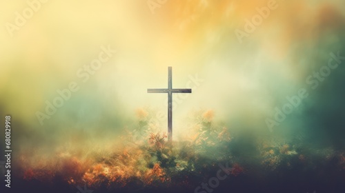 © Left, Naklejka premium Cross with Foggy Background and Vivid Colors