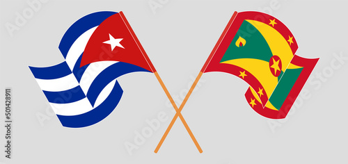 Obraz premium Crossed and waving flags of Cuba and Grenada