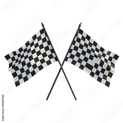 © Zufeel, Fototapeta premium Crossed checkered racing flags isolated on transparent background