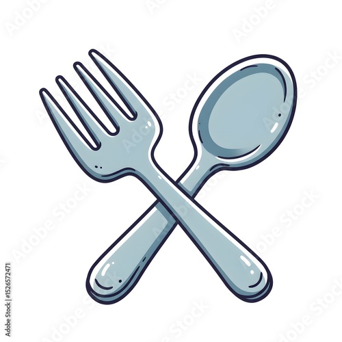 © Lucas, Fototapeta premium Crossed Fork and Spoon: Simple illustration of common eating utensils in a pale blue color scheme.