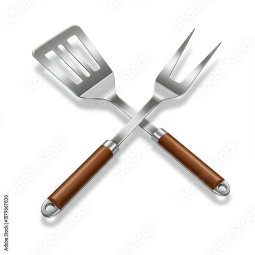 Fototapeta premium Crossed Grill Spatula and Fork with Brown Handles
