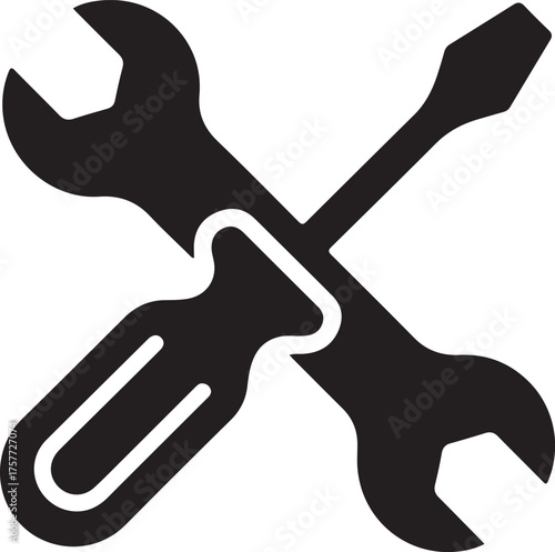 © Sabbir, Fototapeta premium Crossed Wrench and Screwdriver Silhouette Icon | Minimalist Settings Tools Maintenance Vector