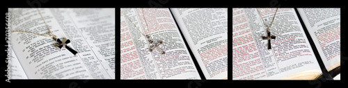 © lawcain, Obraz premium Crosses on Bible Text Collage