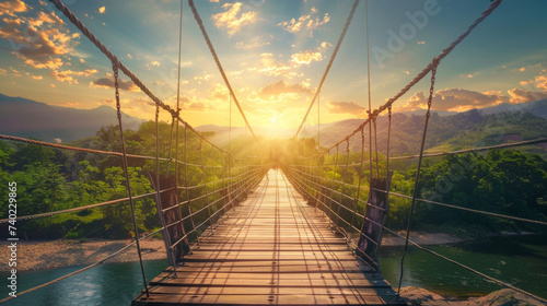 Obraz premium Crossing bridges symbolizes the journey of ideas and the exploration inherent in travel, linking concepts to real-world adventures..