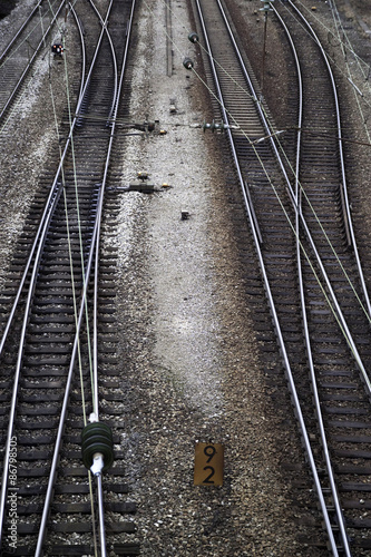 Fototapeta premium Crossing railways near a station in Germany.