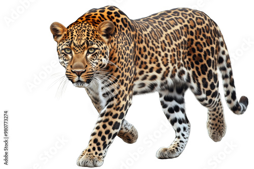 © Maria, Fototapeta premium Crouching leopard on transparent background