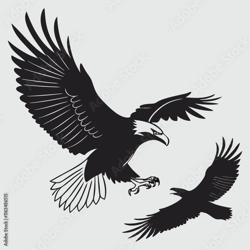 Obraz premium Crow attack eagle silhouette vector design art and illustration