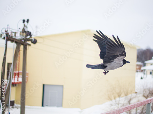 © Максим, Obraz premium crow bird in flight, crow flapping its wings