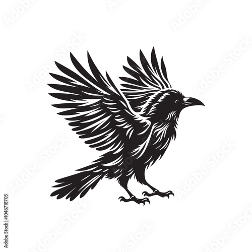 © Picture Paradise, Obraz premium Crow Bird Silhouette Vector on Clean White Background.
