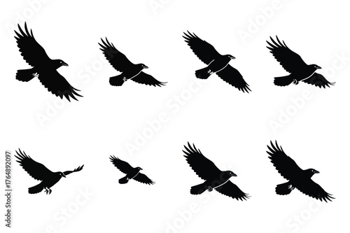 © Poli, Obraz premium crow flying minimal silhouette vector icon set. animal icon set.