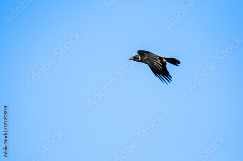 © buharina, Fototapeta premium Crow in flight in the blue sky