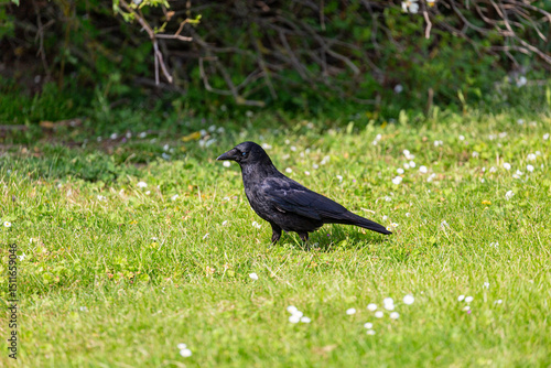 Fototapeta premium Crow on a grass field