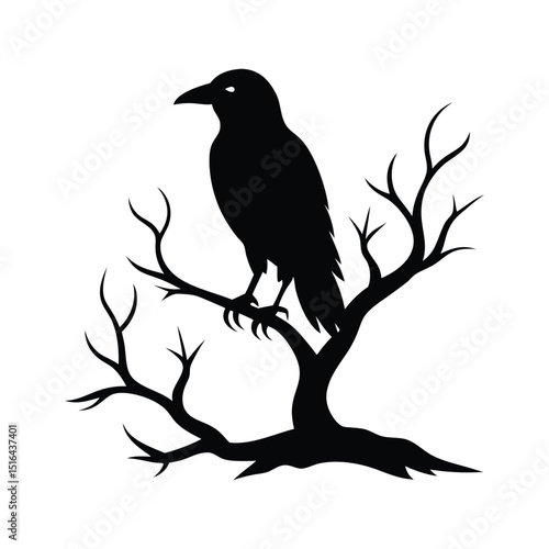 © Arman Chopder, Fototapeta premium crow on a tree with a white background