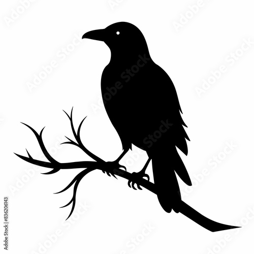 Fototapeta premium Crow setting on a branch vector silhouette illustration