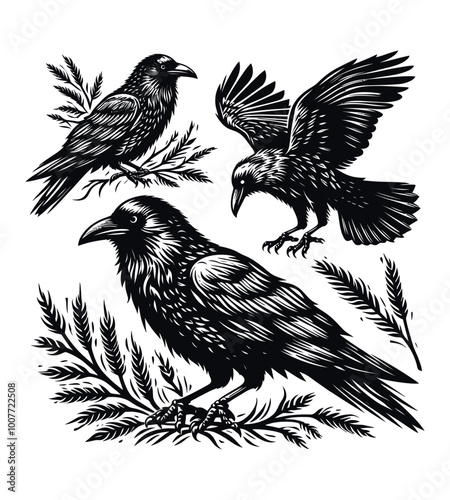 © Bd All Design, Obraz premium Crow silhouette vector illustrations