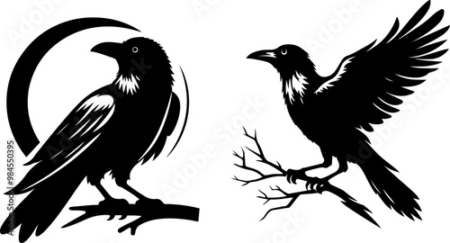 © KarmaYogi Art studio, Fototapeta premium crow silhouette vector style with white background