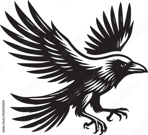 Obraz premium Crow vector illustration in black and white
