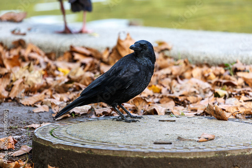 Obraz premium Crow walking in park near to the water
